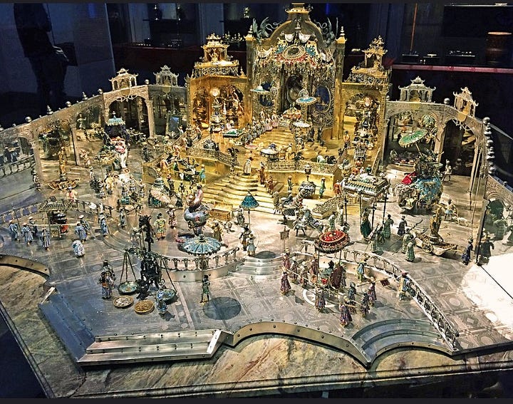Johann Melchior Dinglinger, the Baroque goldsmith in the court of Augustus the Strong, the Elector of Saxony, spent years crafting intricate dioramas—miniature worlds in enamel and precious stones. His depiction of the Mughal emperor Aurangzeb’s court was not hurried. It was devotion translated into form over the course of eight years.